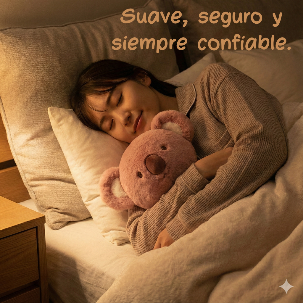 Koala Mimitos está fabricado con materiales hipoalergénicos y un diseño sin piezas pequeñas, pensado para ofrecer abrazos seguros y duraderos. Su textura ultrasuave, su fácil mantenimiento y su funcionamiento garantizan comodidad y tranquilidad noche tras noche.